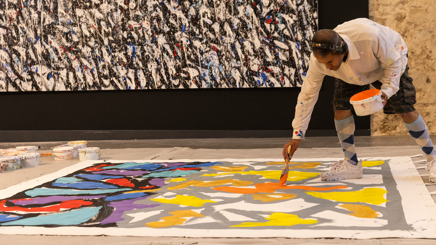 JonOne (John Andrew Perello) began his career as a graffiti writer painting trains in Harlem before rising to global recognition as a contemporary painter. JonOne’s solo exhibit El Tiguere, a Dominican street slang term evoking a hustler’s grit and resilience, pays tribute to his uncompromising survival instinct gained as a child. It will become evident that the artist leaned on dripping paint with vibrant colors to carry himself from the most humble beginnings to establishing a celebrated studio practice in Paris.
