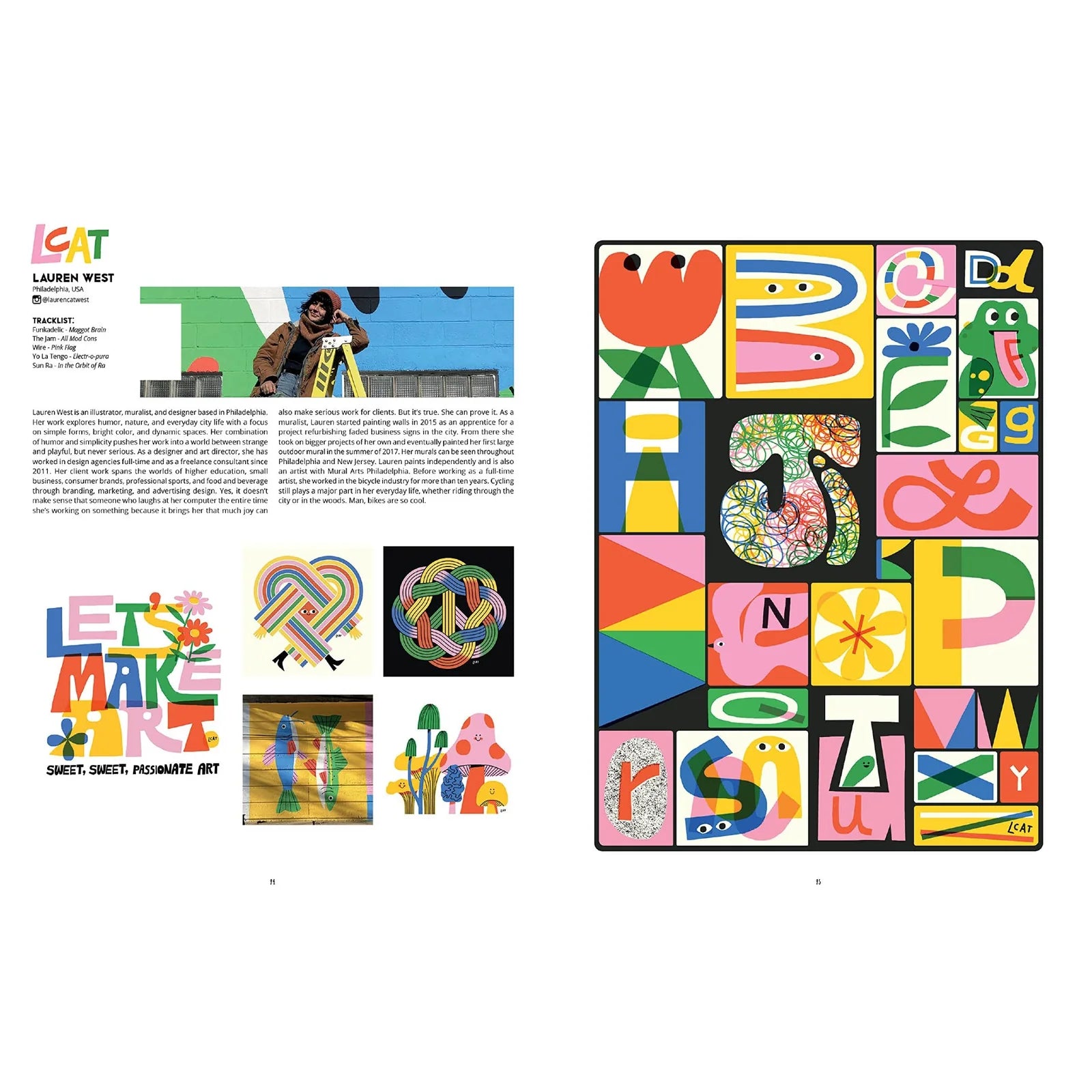 Each artist featured has a brief bio explaining their background and inspirations, examples of their artwork, and an original alphabet. The artists, from 20 countries, share alphabets in vibrant color and black and white, in clarity and in chaos, in pencil on paper and paint on walls. In our digital age, where screens and keyboards have taken over, this ancient art still thrives.